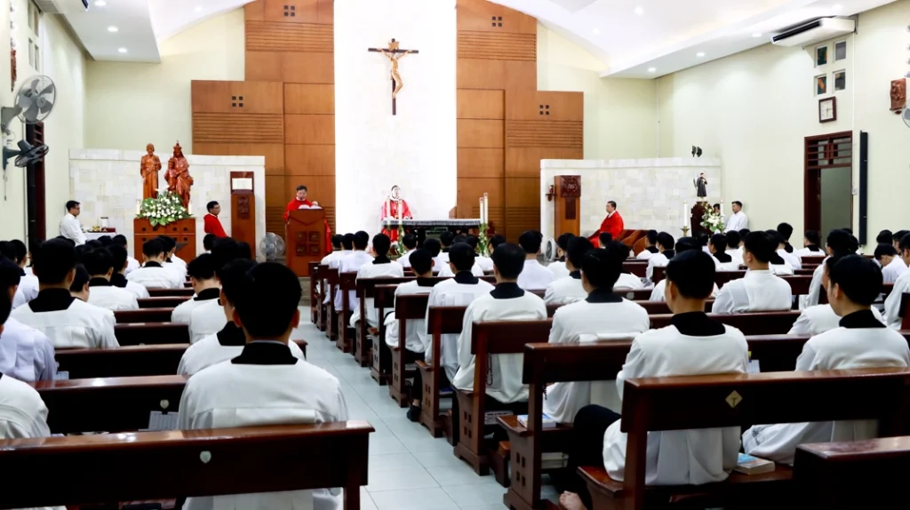 Thứ Hai, ngày 01/12/2025, Đức cha Vinh Sơn Nguyễn Văn Bản – Giám mục Giáo phận Hải Phòng đến thăm và huấn đức quý thầy Đại Chủng viện Thánh Giu-se Hà Nội. Buổi sáng, Đức cha gặp gỡ và chia sẻ với quý thầy tại phân khoa Tu đức – Triết Đọc tiếp