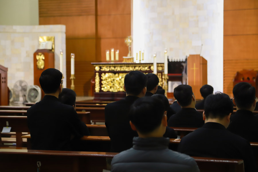 Hiệp thông với lời mời gọi của Đức Thánh Cha Lê-ô XIV trong Mùa Chay năm 2026, quý cha và toàn thể quý thầy chủng sinh thuộc bốn lớp Thần học đã cùng quy tụ trước Thánh Thể Chúa để cầu nguyện và suy niệm vào lúc 20g00, thứ Sáu ngày 13 tháng 03 năm 2026, tại Nhà nguyện Đại Chủng viện. Giờ chầu do cha linh giám Giuse Nguyễn Ngọc Bích chủ sự.