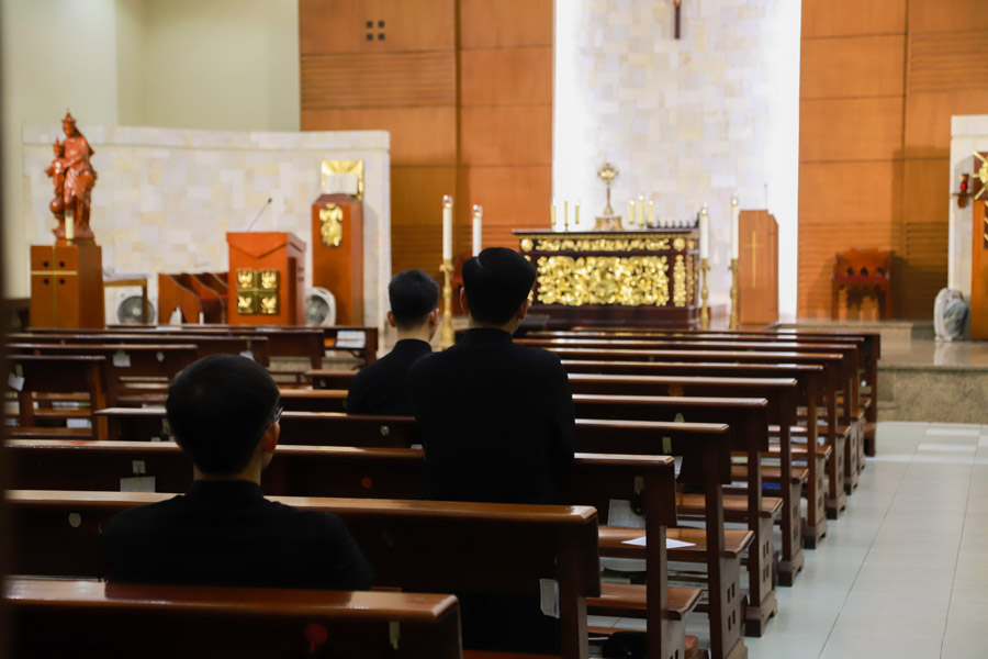 Trong giờ cầu nguyện, gia đình Đại Chủng viện đã dâng lên Chúa những ý nguyện cho Hội Thánh, cho thế giới được hòa bình, cho các nhà lãnh đạo quốc gia biết dấn thân xây dựng công lý và hòa bình, cũng như cho mỗi người biết hoán cải và trở nên chứng nhân của tình yêu và lòng thương xót Chúa.