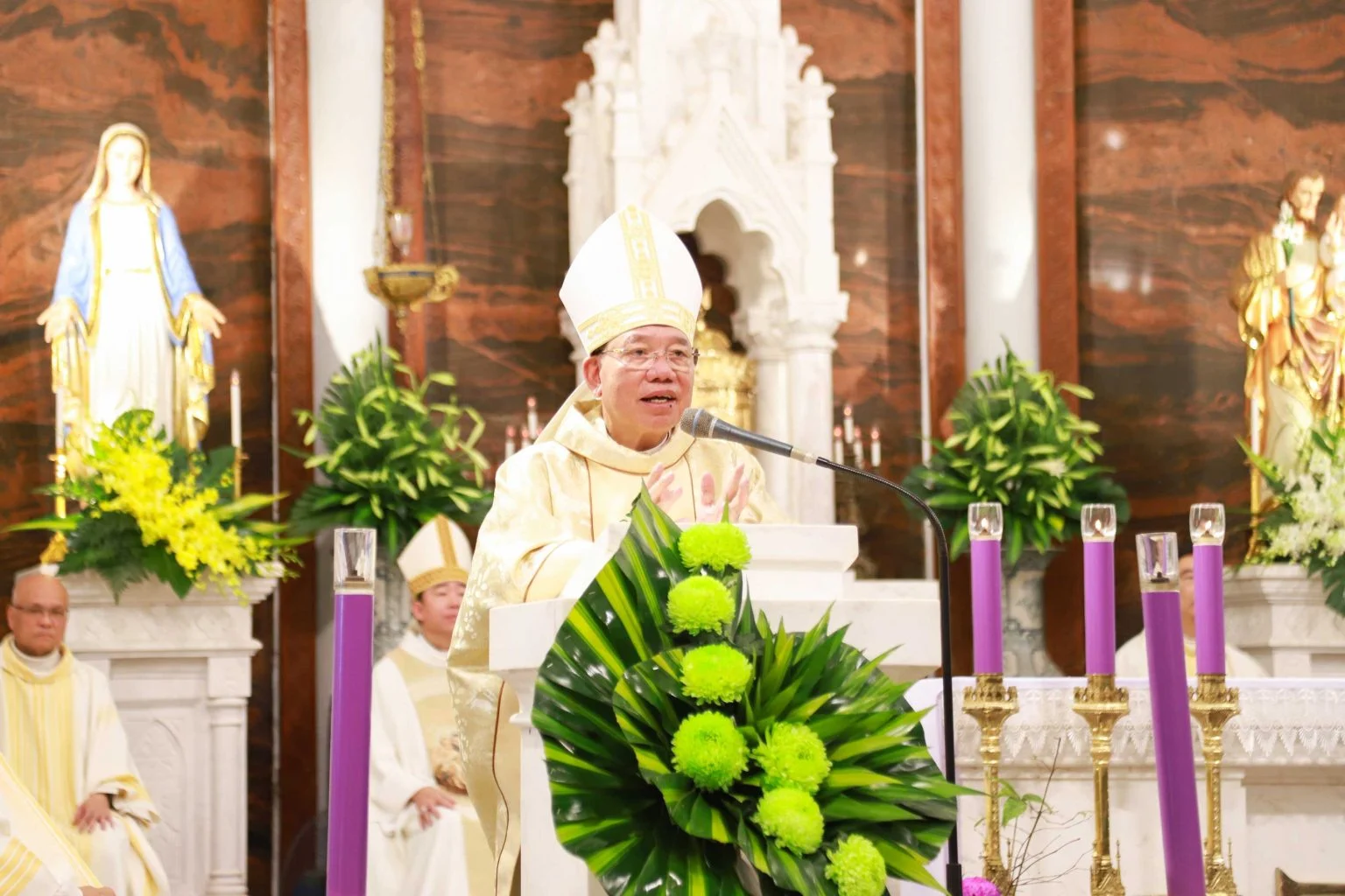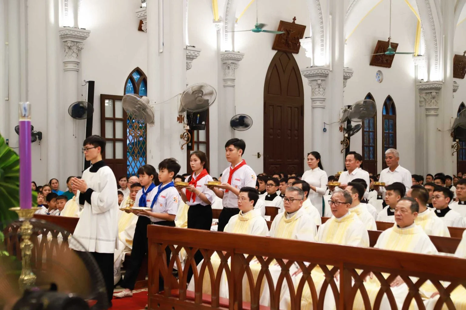Hiệp dâng Thánh lễ có Đức cha Phụ tá Giu-se Vũ Công Viện, Cha Giám đốc An-tôn Nguyễn Văn Thắng, Cha phó Giám đốc Giu-se Nguyễn Văn Diễm, Cha xứ Phan-xi-cô Xa-vi-ê Lê Thanh Nghị, cùng quý cha, quý tu sĩ, quý thầy chủng sinh, và đông đảo cộng đoàn dân Chúa.