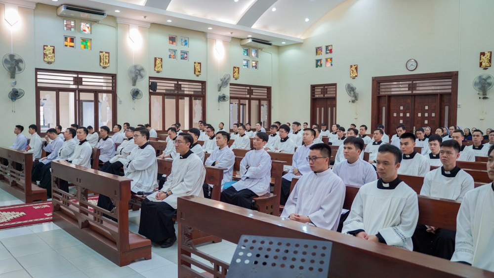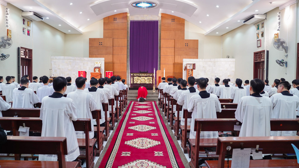 Vào lúc 15g00 Thứ Sáu, ngày 03/04/2026, tại Phân khoa Thần học – Đại Chủng viện Thánh Giuse Hà Nội, cha linh hướng Micae Nguyễn Hữu Thu, SJ đã chủ sự nghi thức Tưởng niệm cuộc Thương Khó của Chúa Giêsu. Hiệp thông trong giờ cử hành linh thiêng này, có quý thầy thuộc ba lớp Thần học (Thần I, Thần II và Thần III), cùng quý sơ thuộc Hội dòng Phaolô Thiện Bản và Hội dòng Mến Thánh Giá Hà Nội.