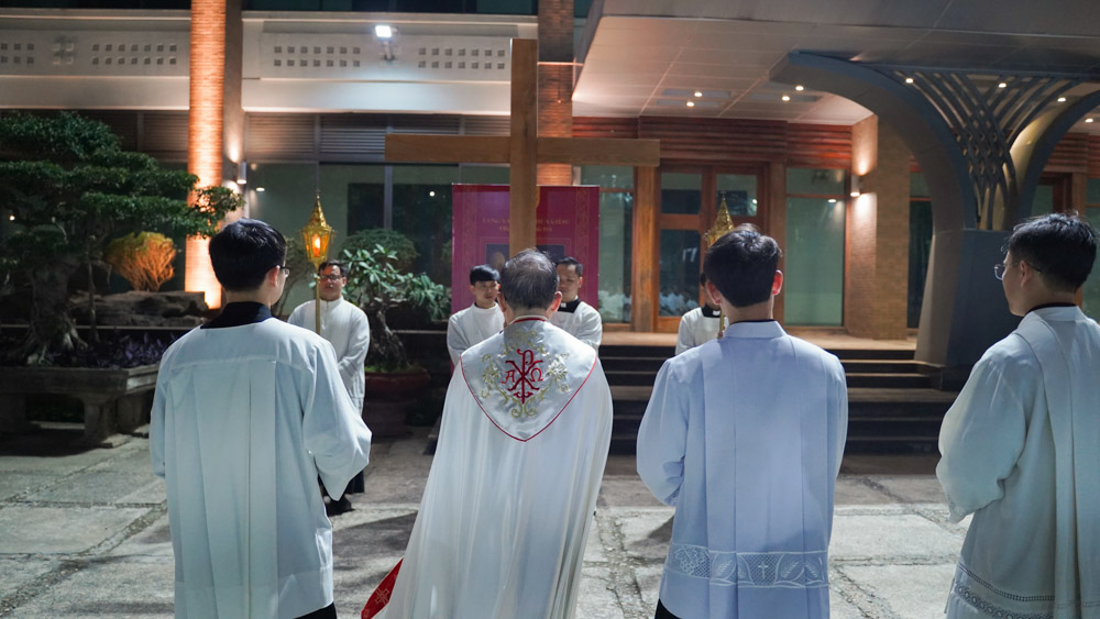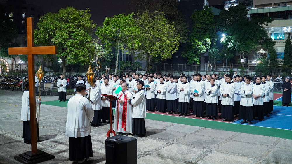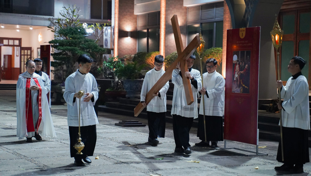 Đến 20g00 cùng ngày, cha linh hướng Micae tiếp tục chủ sự nghi thức đi Đàng Thánh giá trọng thể tại khuôn viên của Đại Chủng Viện. Qua mười bốn chặng Đàng Thánh giá, mỗi thành viên trong gia đình Chủng viện như được bước vào cuộc Khổ Nạn của Thầy Giêsu Chí Thánh, để từ sự thinh lặng của tâm hồn, mỗi người thấu cảm cách sâu xa hơn mầu nhiệm Tình yêu Cứu độ vô biên.