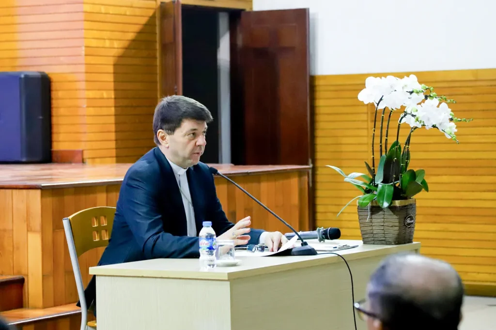 Trong hai ngày 05–06/01/2026, Đại Chủng viện Thánh Giuse Hà Nội hân hoan đón tiếp Đức cha Đa-minh Hoàng Minh Tiến – Giám mục Giáo phận Hưng Hóa, đến huấn đức và dâng Thánh lễ cho quý thầy đang tu học tại hai Phân khoa Triết học và Thần học. Sáng Đọc tiếp