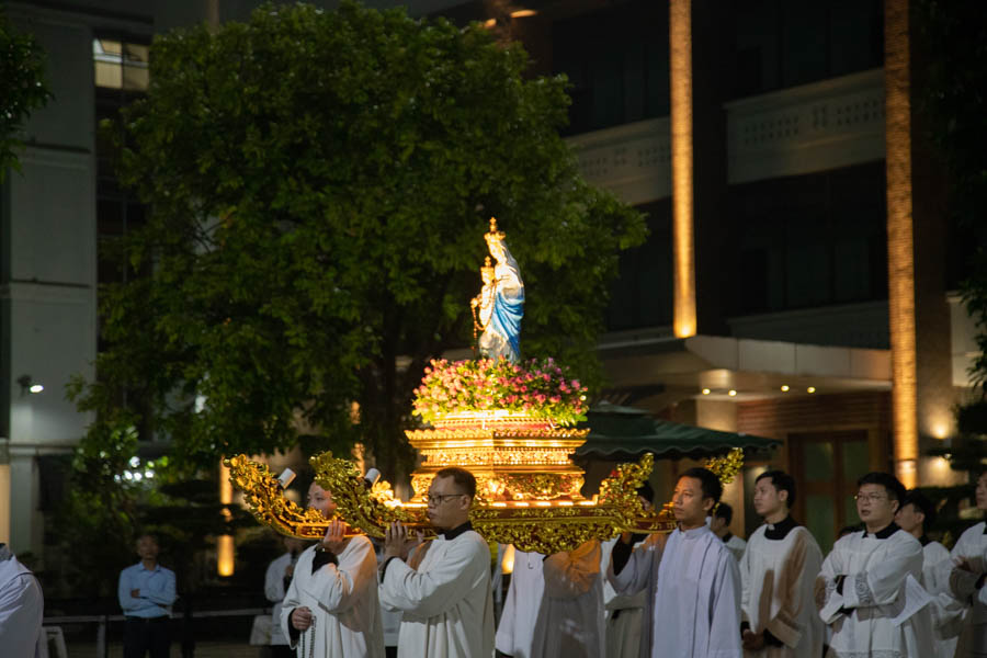 Trong bầu khí linh thiêng và chan chứa lòng mến của những ngày cuối tháng Mười, vào tối thứ Bảy, ngày 25 tháng 10 năm 2025, cộng đoàn Phân khoa Thần học, Đại Chủng Viện Thánh Giuse Hà Nội, đã long trọng cử hành cuộc rước kiệu cung nghinh Đức Đọc tiếp