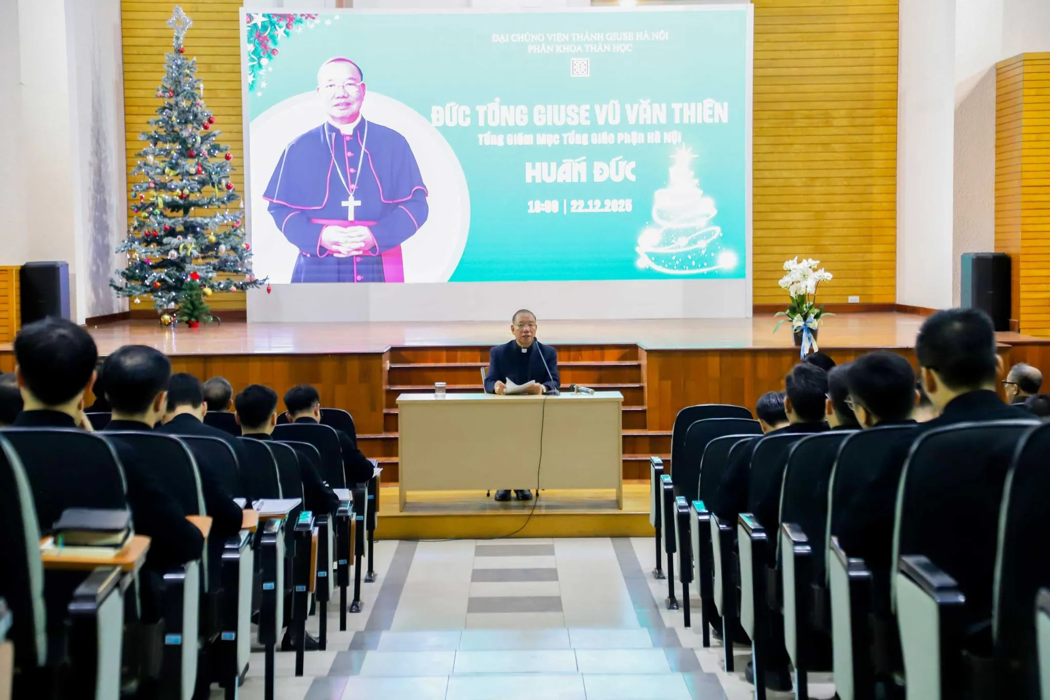 Buổi huấn đức khép lại vào lúc 18h50 với lời chúc mừng Giáng Sinh ấm áp của Đức TGM Giu-se gửi đến toàn thể gia đình Đại Chủng viện.