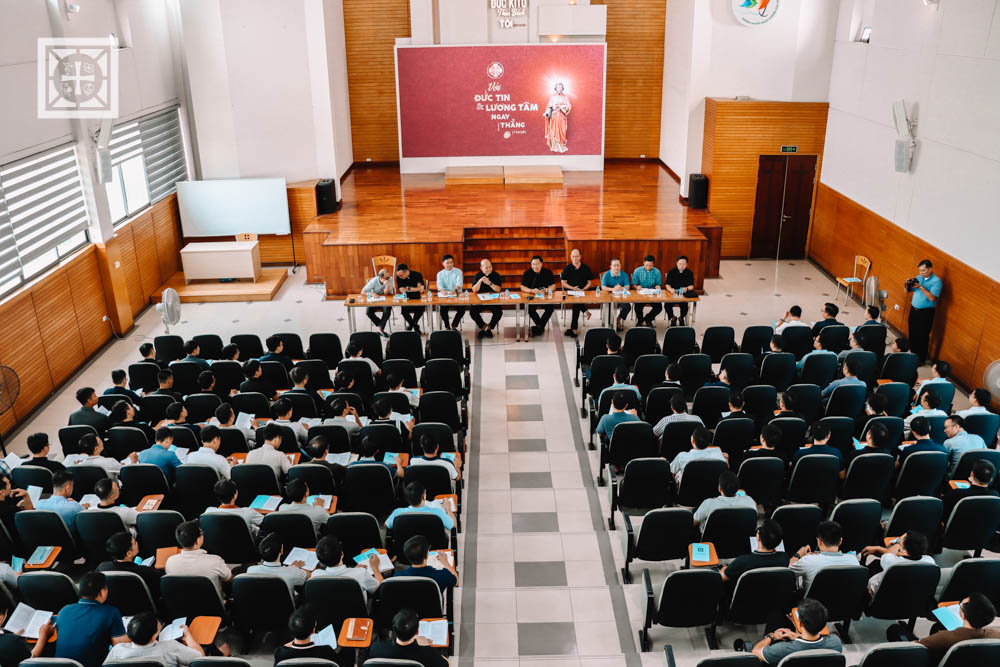 Dưới ánh sáng của câu Lời Chúa mà Đức Tổng Giuse chọn làm chủ đề cho năm học mới: “Với đức tin và lương tâm ngay thẳng” (1 Tm 1,19), quý thầy được mời gọi sống trung tín và kiên vững trong hành trình học tập và tu luyện. Xin mọi người cùng hiệp ý cầu nguyện cho quý thầy chủng sinh luôn hăng say và trung thành, để ngày càng trở nên đồng hình đồng dạng với Đức Kitô – Vị Mục Tử Nhân Lành.