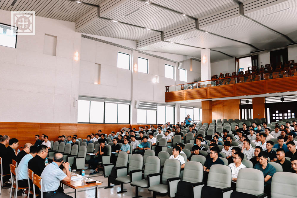 Buổi chiều cùng ngày, tại phòng hội, Đại Chủng Viện đã tổ chức buổi định hướng cho năm học mới với sự hiện diện của Cha Giám đốc, quý Cha trong Ban Giám đốc, quý Cha Linh hướng và quý Cha Giáo. Bầu khí tại phòng hội trang nghiêm nhưng cũng ấm áp, bởi những lời nhắn nhủ chân thành và những nụ cười khích lệ từ quý Cha Giáo.