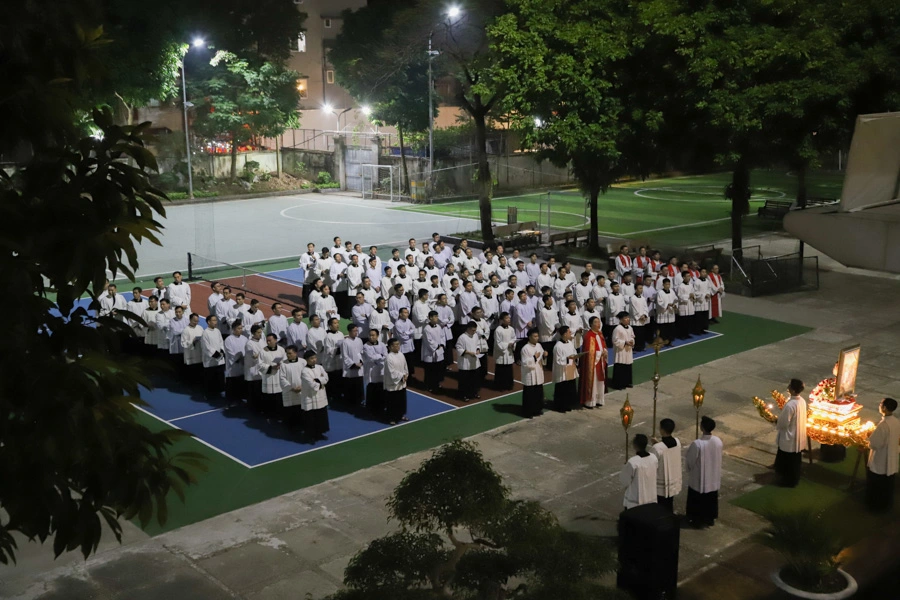 Trong suốt cuộc rước, cộng đoàn cùng chiêm ngắm và suy niệm về những mẫu gương tử đạo gần gũi với đời sống chủng viện: