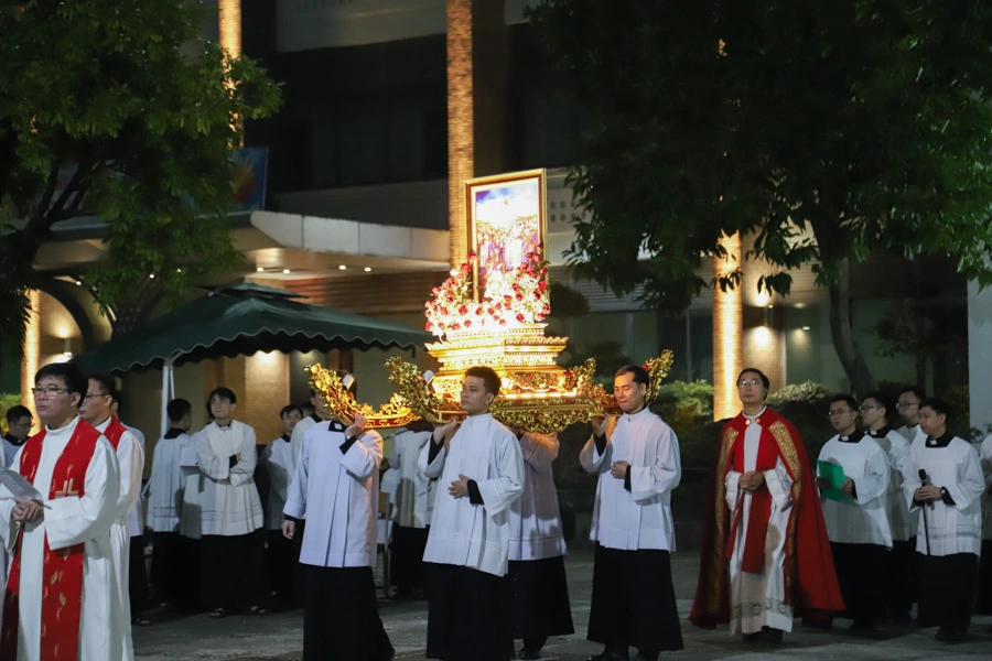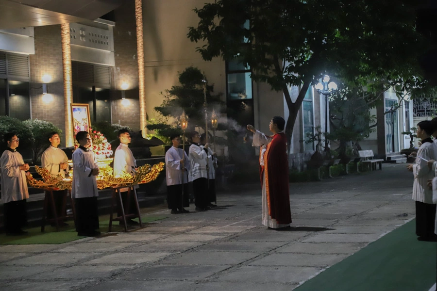 Ngay sau giờ Kinh Chiều, gia đình Đại Chủng Viện long trọng cử hành cuộc rước kiệu cung nghinh Các Thánh Tử Đạo Việt Nam.