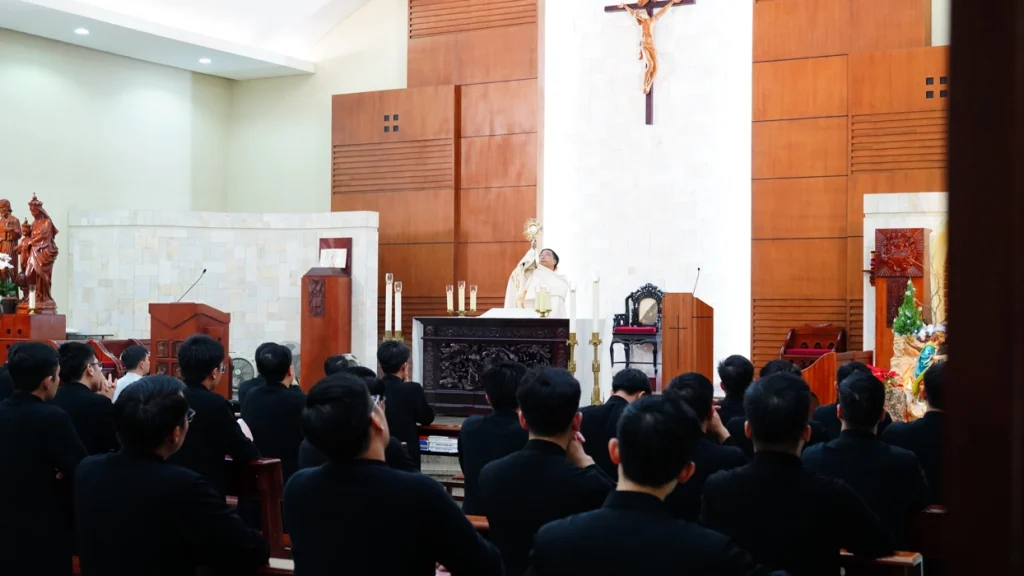 Đây không chỉ là một sinh hoạt đạo đức thường kỳ, nhưng còn là một khoảnh khắc đào tạo mang chiều sâu thiêng liêng, giúp mỗi thành viên trong gia đình Đại Chủng viện: Cha Giám đốc Antôn, quý cha trong ban đào tạo, quý cha đặc trách, quý cha linh hướng và anh em chủng sinh có thời gian lắng đọng để tiếp tục phân định hành trình ơn gọi của mình trước sự hiện diện sống động của Chúa Giêsu Thánh Thể.