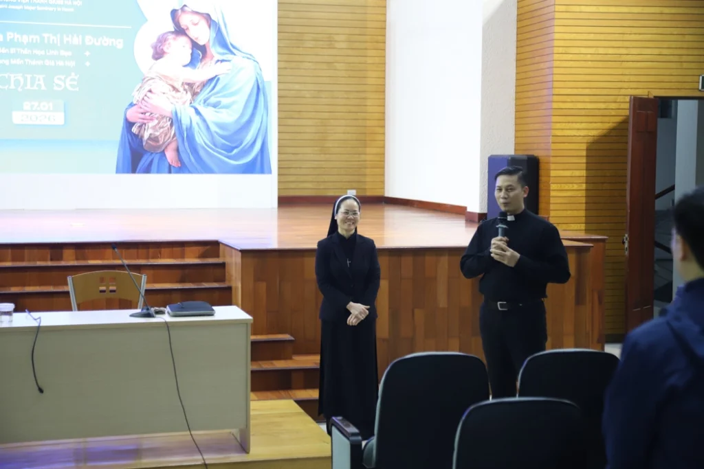 Trong bầu khí huynh đệ và học hỏi, chiều ngày 27/01/2026, Phân khoa Thần học – Đại Chủng Viện Thánh Giuse Hà Nội đã hân hoan chào đón Sơ Tê-rê-sa Phạm Thị Hải Đường, nữ tu Hội Dòng Mến Thánh Giá Hà Nội, đến chia sẻ với quý thầy về cuộc đời, hành trình đức tin và sứ vụ truyền giáo của Đức cha Pierre Lambert de la Motte.