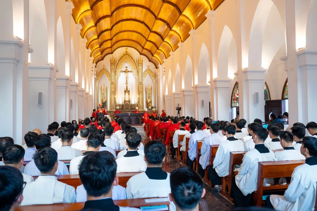 Sáng thứ Bảy, ngày 27/9/2025, Đức Tổng Giám mục (TGM) Giu-se Vũ Văn Thiên long trọng chủ sự Thánh lễ làm phép nhà nguyện cổ của Đại Chủng viện (ĐCV) Thánh Giu-se Hà Nội – Cơ sở Hoàng Nguyên sau thời gian trùng tu, và khai giảng năm học mới 2025–2026.