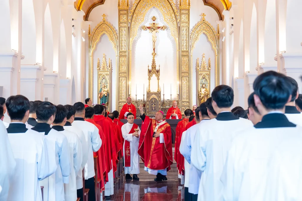 Sáng thứ Bảy, ngày 27/9/2025, Đức Tổng Giám mục (TGM) Giu-se Vũ Văn Thiên long trọng chủ sự Thánh lễ làm phép nhà nguyện cổ của Đại Chủng viện (ĐCV) Thánh Giu-se Hà Nội – Cơ sở Hoàng Nguyên sau thời gian trùng tu, và khai giảng năm học mới 2025–2026.