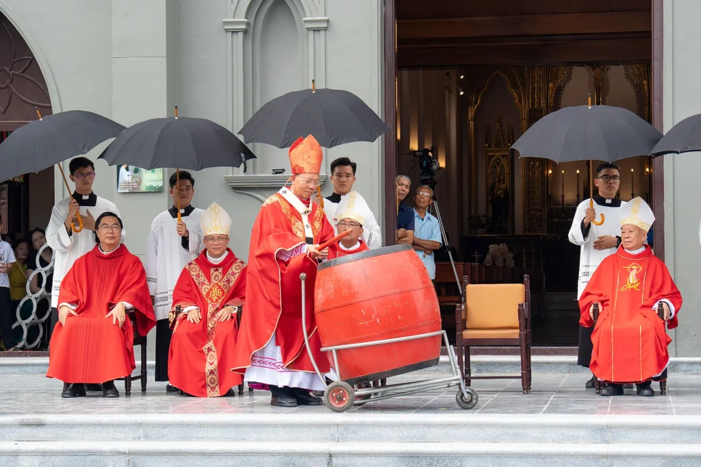 Đến 9h45, tại tiền sảnh Nhà nguyện, Cha Giám đốc An-tôn Nguyễn Văn Thắng chào mừng quý đấng bậc và toàn thể cộng đoàn hiện diện, đồng thời bày tỏ niềm vui trước ngày trọng đại của ĐCV. Ngay sau đó, Đức TGM Giu-se gióng hồi trống khai giảng năm học 2025–2026 cho quý thầy chủng sinh.