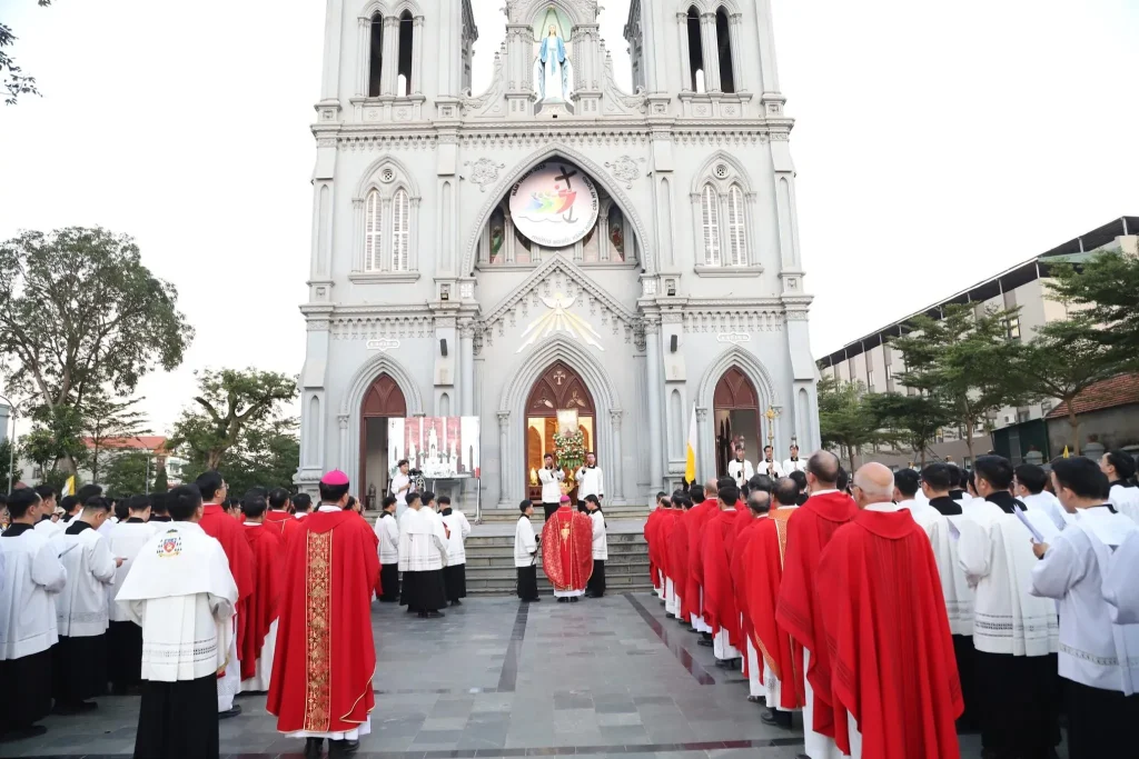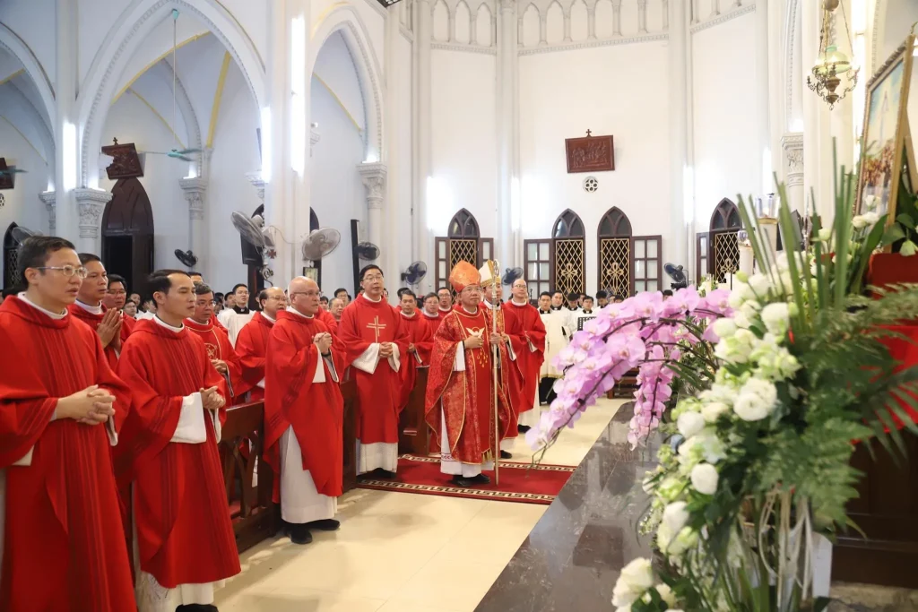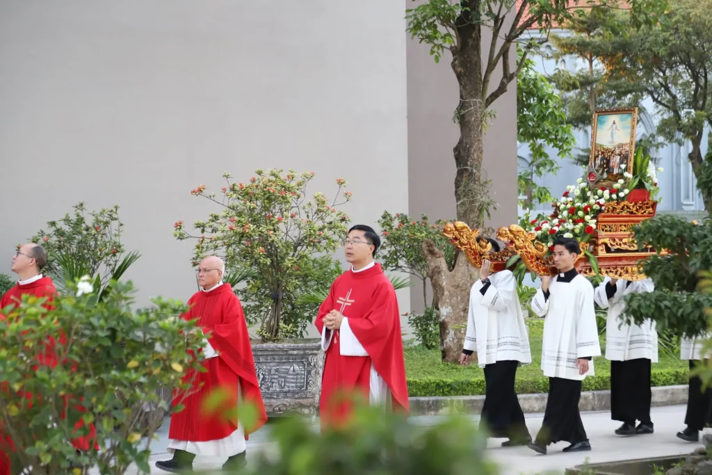 Trong tiếng hát trang nghiêm của ca đoàn cùng nhịp trống, tiếng kèn rộn vang, Đức TGM Giu-se đã xông hương linh ảnh Các Thánh Tử Đạo Việt Nam. Các hội đoàn lần lượt tiến bước trong bầu khí sốt sắng, gợi lại niềm tin kiên cường oanh liệt của những chứng nhân đức tin đã hiến dâng mạng sống để làm sáng danh Chúa.