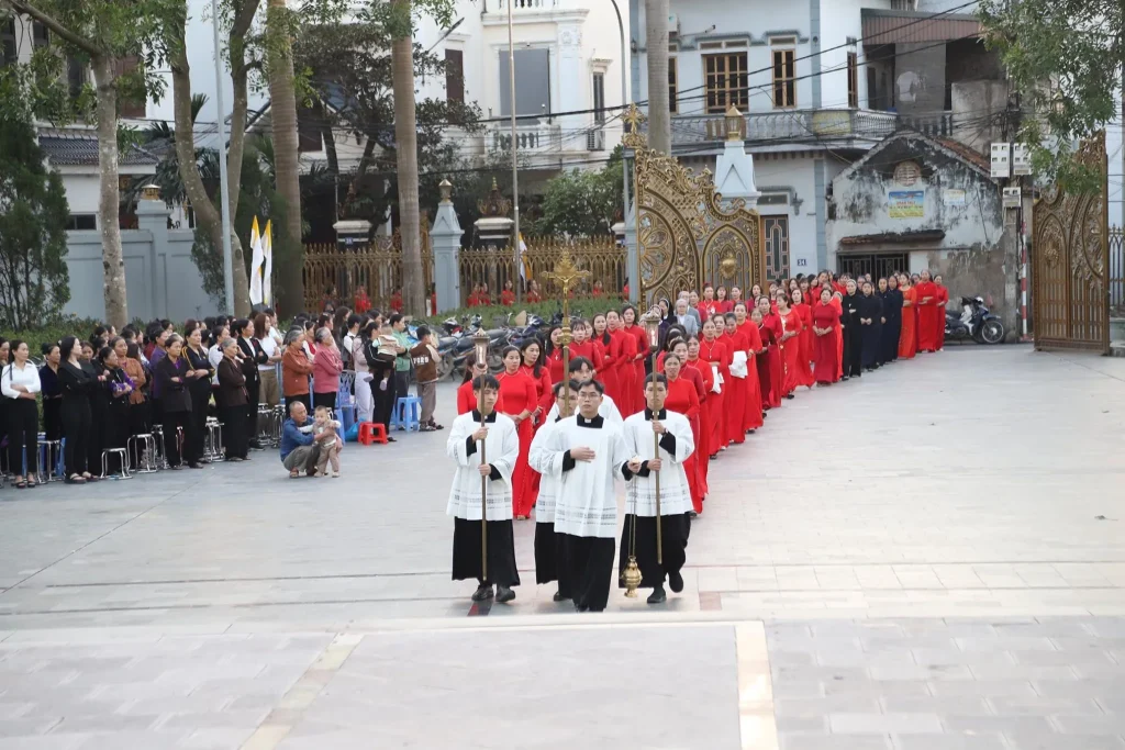 Trong tiếng hát trang nghiêm của ca đoàn cùng nhịp trống, tiếng kèn rộn vang, Đức TGM Giu-se đã xông hương linh ảnh Các Thánh Tử Đạo Việt Nam. Các hội đoàn lần lượt tiến bước trong bầu khí sốt sắng, gợi lại niềm tin kiên cường oanh liệt của những chứng nhân đức tin đã hiến dâng mạng sống để làm sáng danh Chúa.